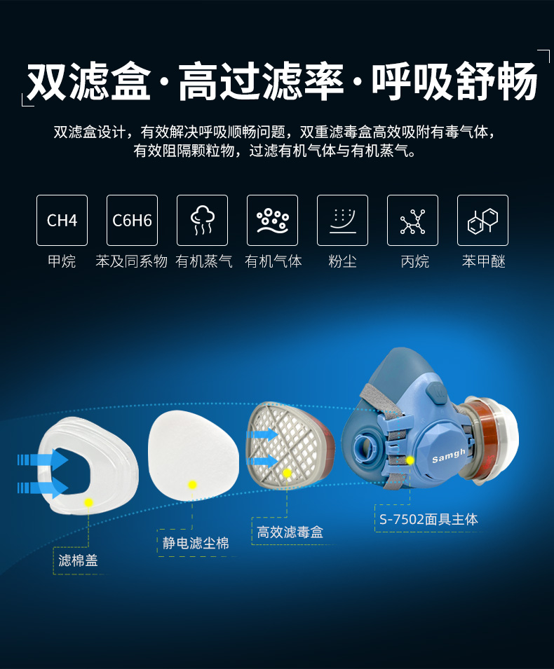 Samgh S-7502 半面罩防毒面具