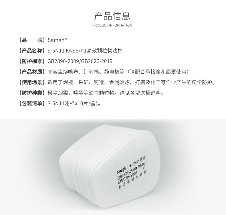 Samgh S-5N11 P1/KN95预过滤棉